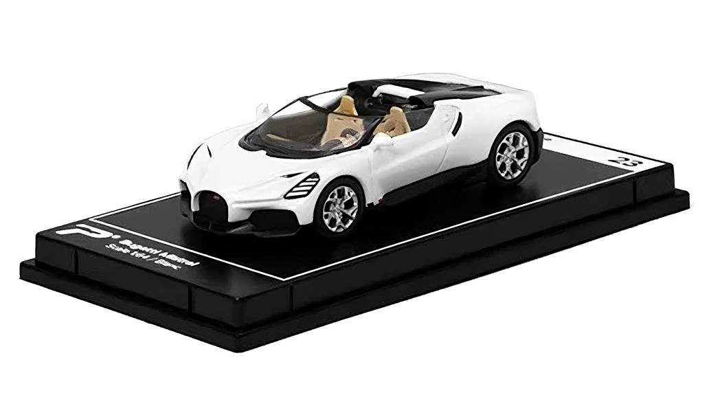 FabriquĂ©e en mĂ©tal, cette miniature Ă lâĂ©chelle 1:64 capture avec prĂ©cision le design sculptural et raffinĂ© de lâhypercar dĂ©capotable la plus exclusive au monde.